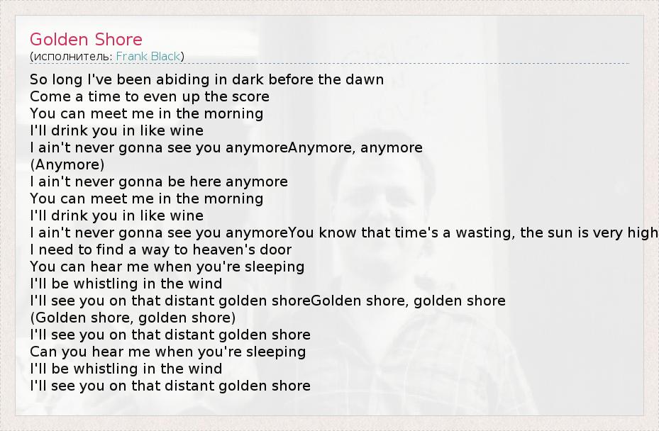 А как ты думаешь, о чем песня "Golden Shore" ?