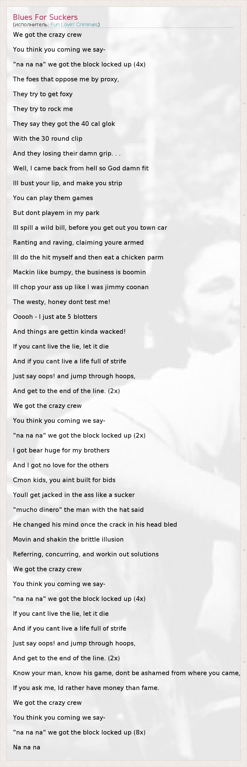 А как ты думаешь, о чем песня "Blues For Suckers" ?