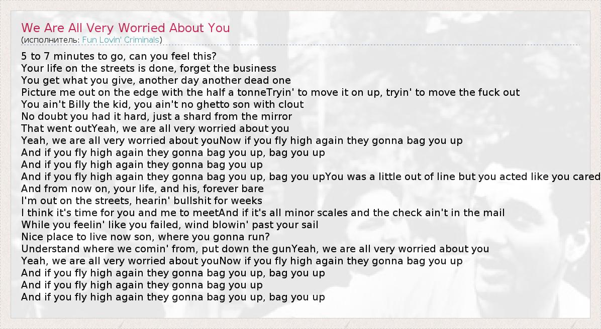 А как ты думаешь, о чем песня "We Are All Very Worried About You" ?