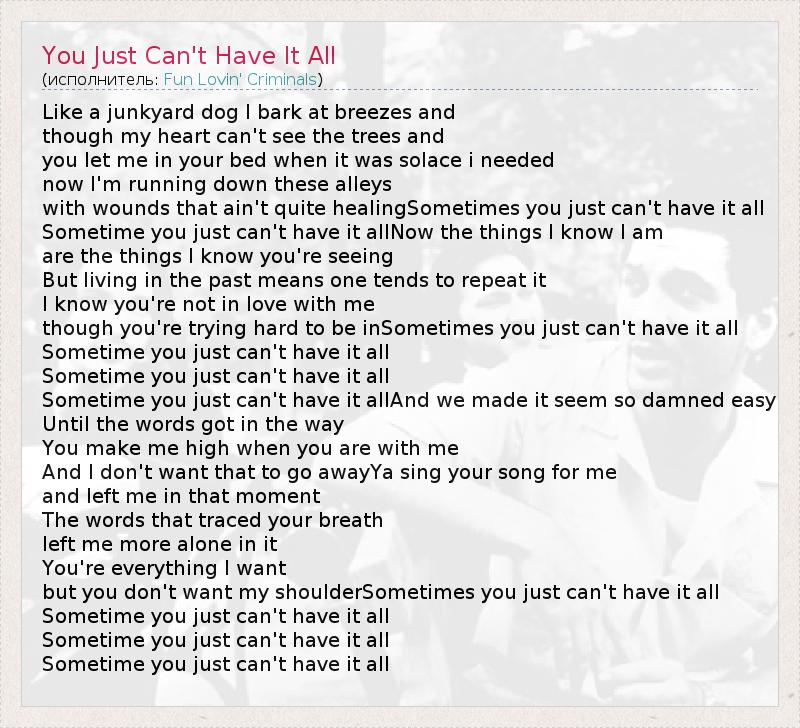 А как ты думаешь, о чем песня "You Just Can't Have It All" ?