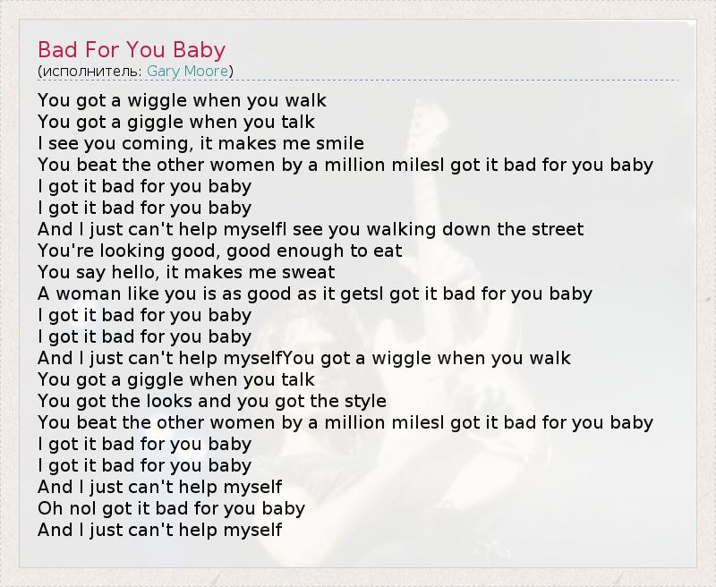 А как ты думаешь, о чем песня "Bad For You Baby" ?