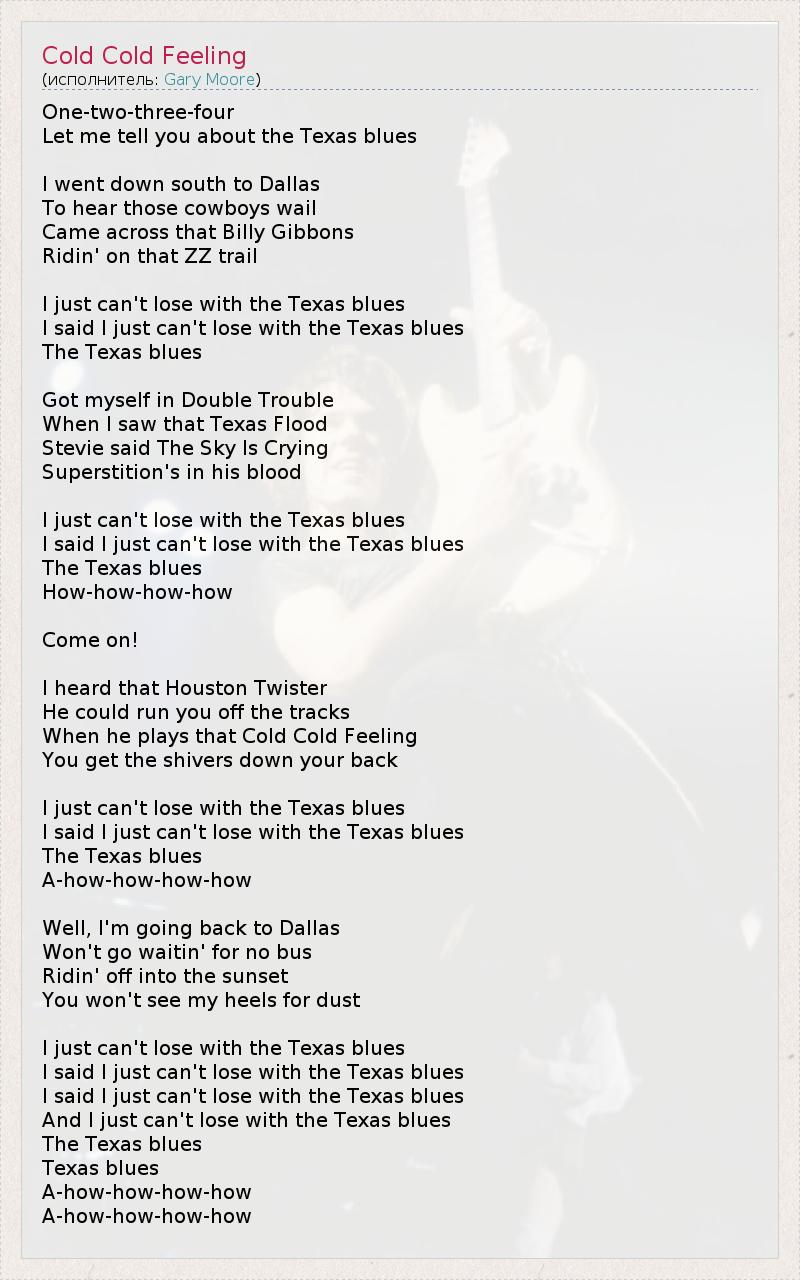 А как ты думаешь, о чем песня "Cold Cold Feeling" ?