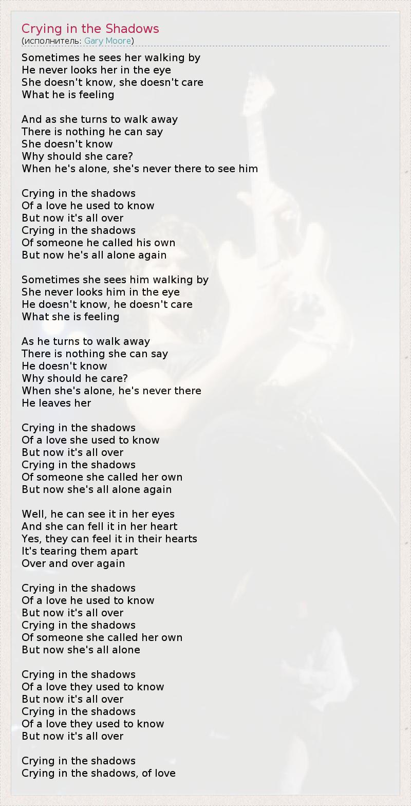А как ты думаешь, о чем песня "Crying in the Shadows" ?