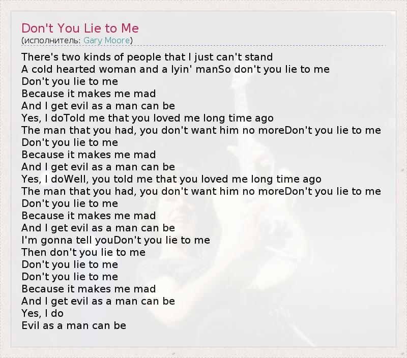 А как ты думаешь, о чем песня "Don't You Lie to Me" ?