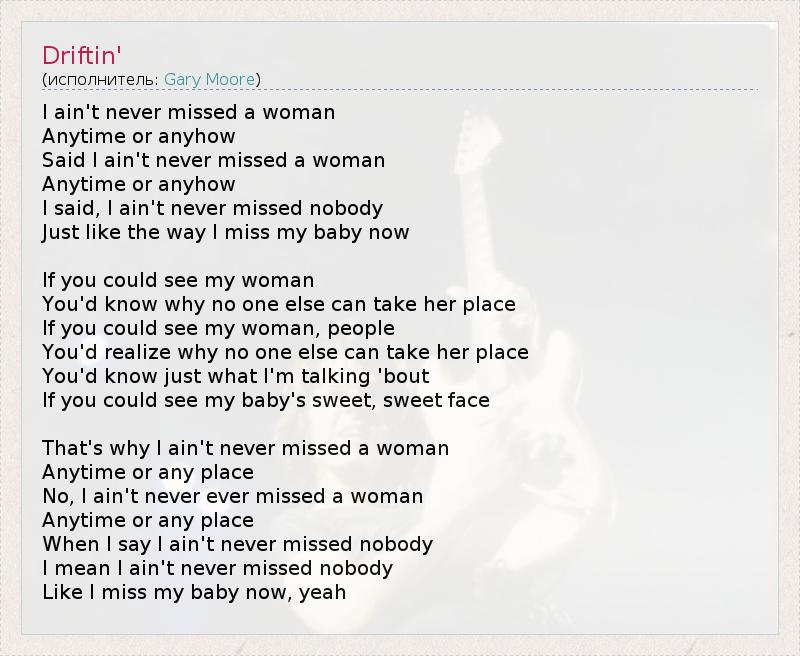 I ain't never missed a woman