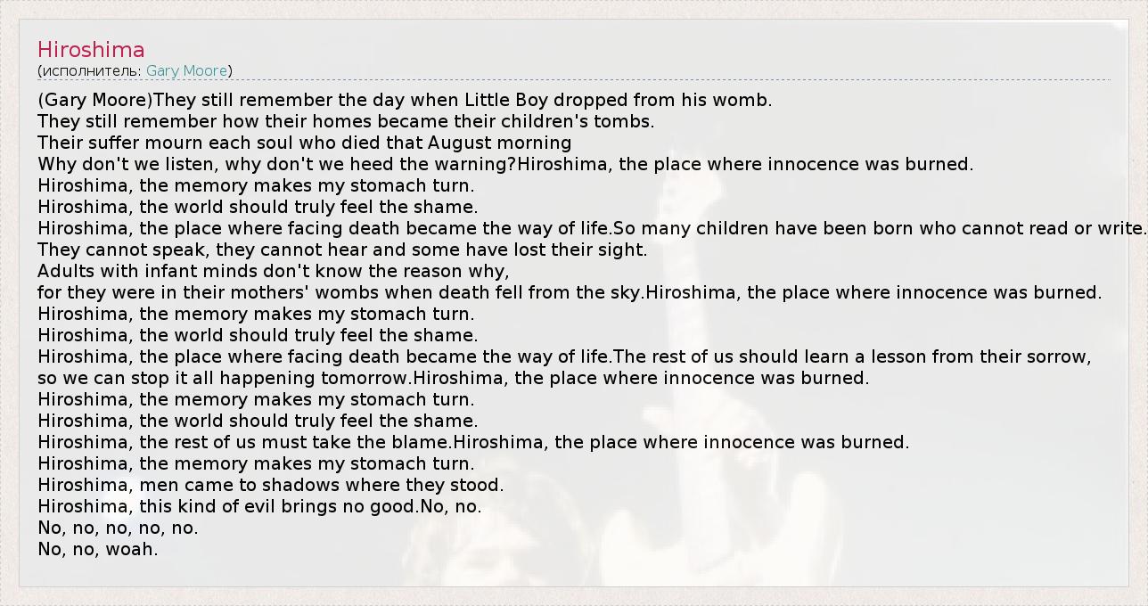 А как ты думаешь, о чем песня "Hiroshima" ?