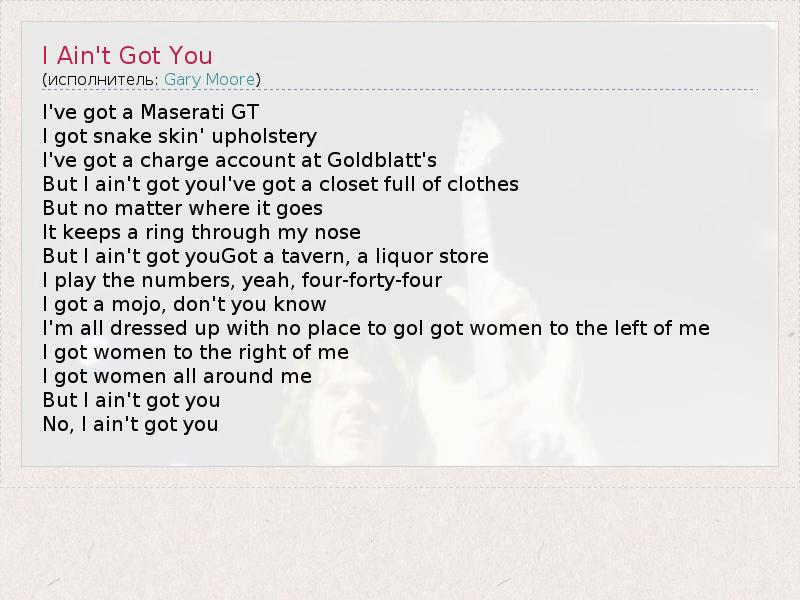А как ты думаешь, о чем песня "I Ain't Got You" ?