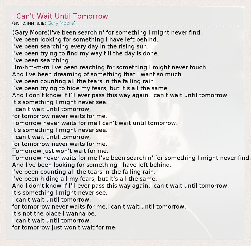 А как ты думаешь, о чем песня "I Can't Wait Until Tomorrow" ?
