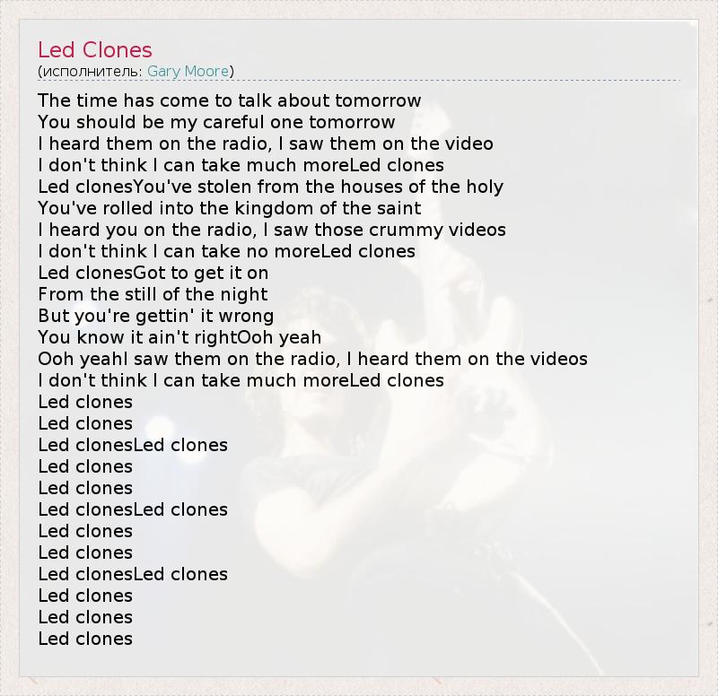 Это интересно:Гэри Мур (англ. Gary Moore, полное имя Роберт Уильям Гари Мур; родился 4 апреля 1952 года в Белфасте, Северная Ирландия - умер 6 февраля 2011 г.) — легендарный ирландский гитарист, певец и композитор. Для "муровской" манеры игры на гитаре характерен звук с применением овердрайва и высоким значением сустейна. В ходе своего творческого пути, уходящего корнями в 1960-е, он сотрудничал с такими исполнителями,... продолжение