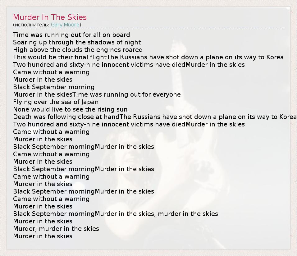 А как ты думаешь, о чем песня "Murder In The Skies" ?