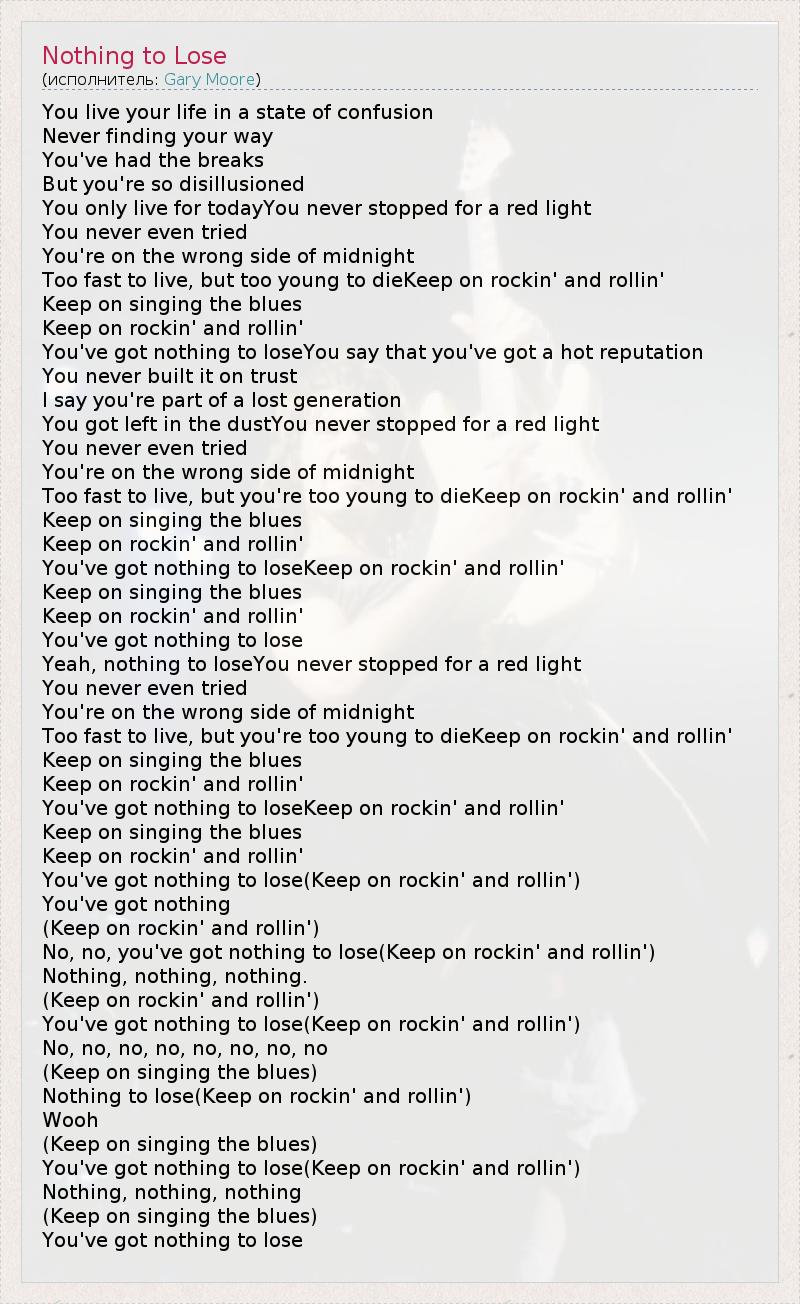 А как ты думаешь, о чем песня "Nothing to Lose" ?