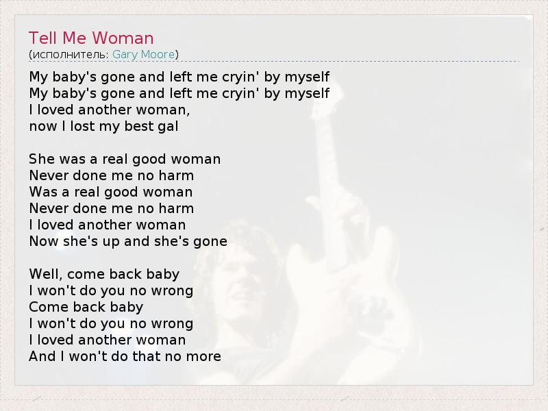 А как ты думаешь, о чем песня "Tell Me Woman" ?