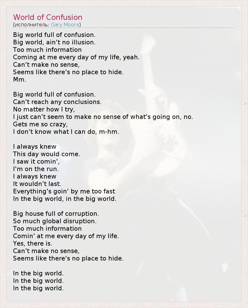 А как ты думаешь, о чем песня "World of Confusion" ?