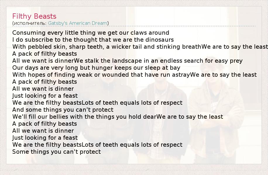 А как ты думаешь, о чем песня "Filthy Beasts" ?