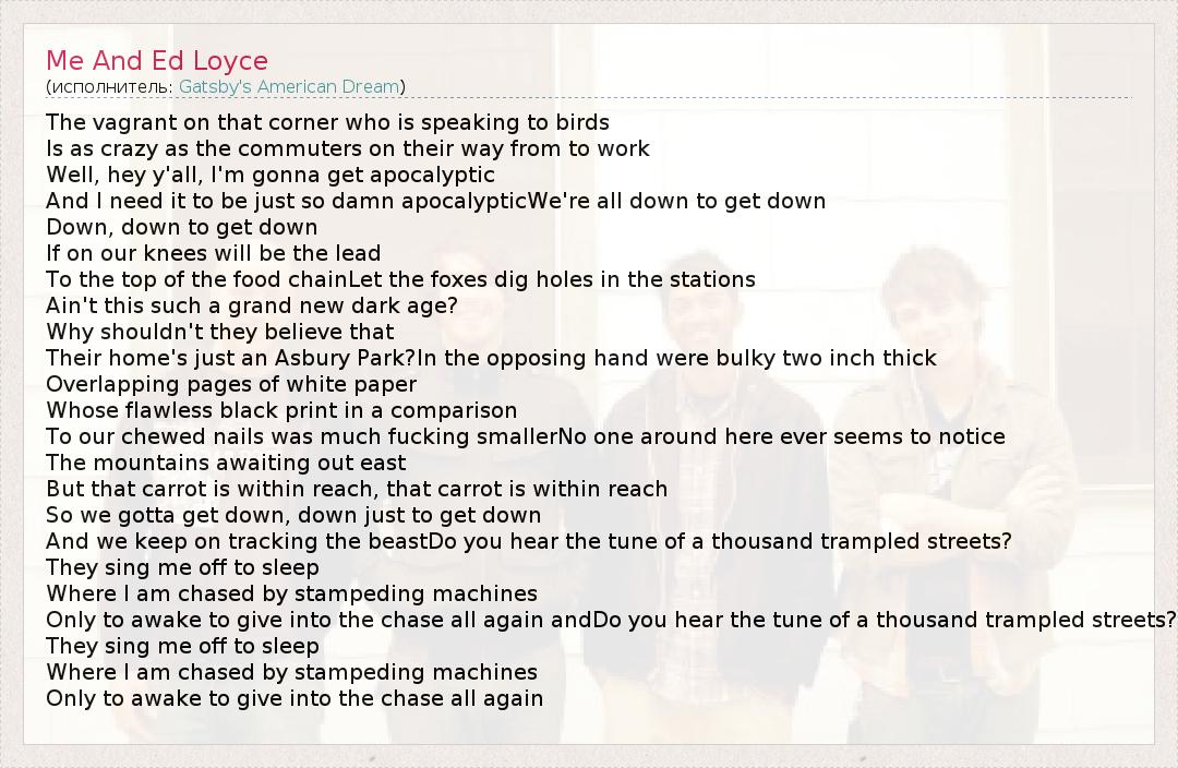 А как ты думаешь, о чем песня "Me And Ed Loyce" ?