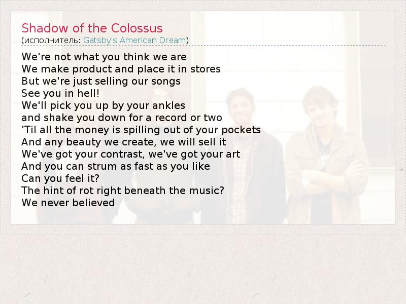 А как ты думаешь, о чем песня "Shadow of the Colossus" ?