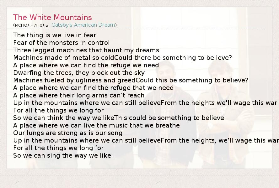 А как ты думаешь, о чем песня "The White Mountains" ?
