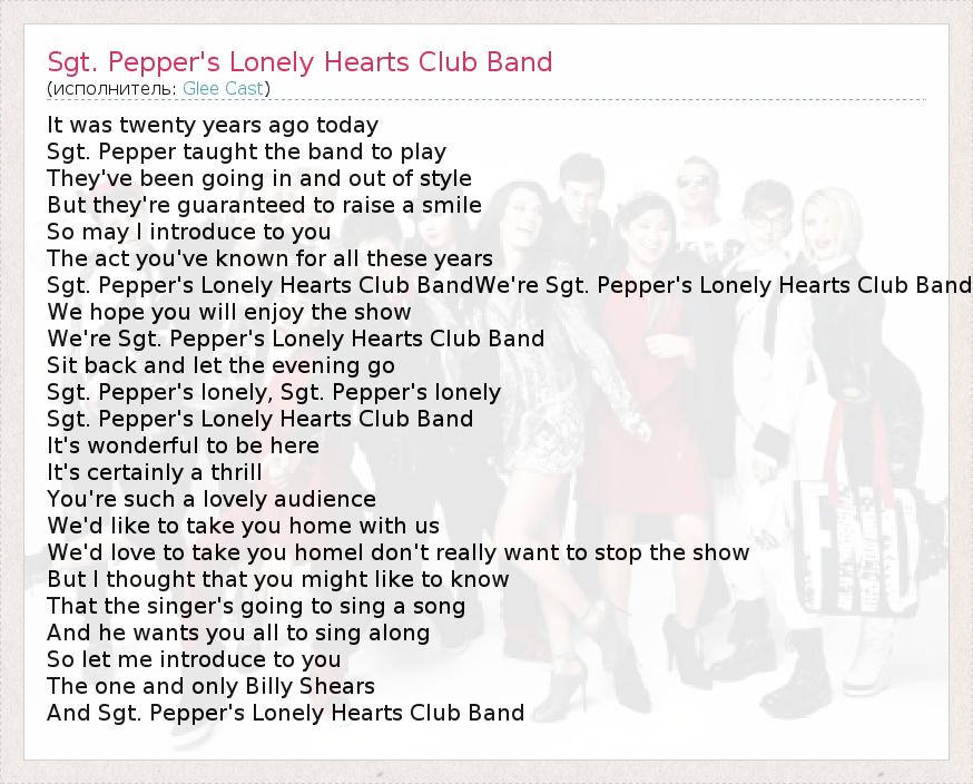ГлавнаяИсполнителиGlee CastSgt. Pepper's Lonely Hearts Club Band
