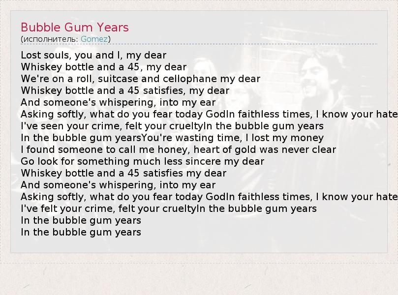 А как ты думаешь, о чем песня "Bubble Gum Years" ?