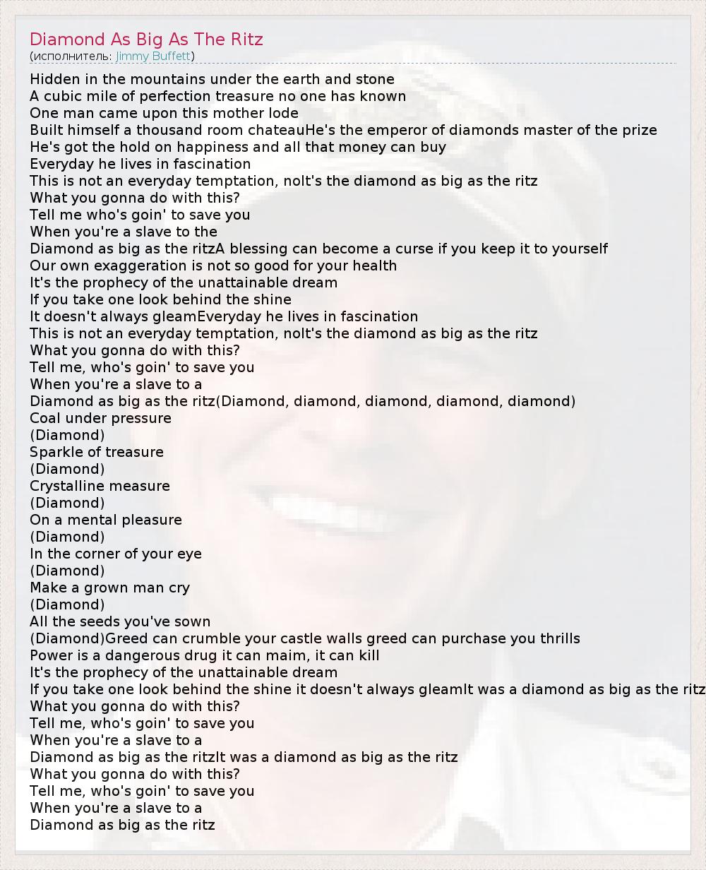 А как ты думаешь, о чем песня "Diamond As Big As The Ritz" ?