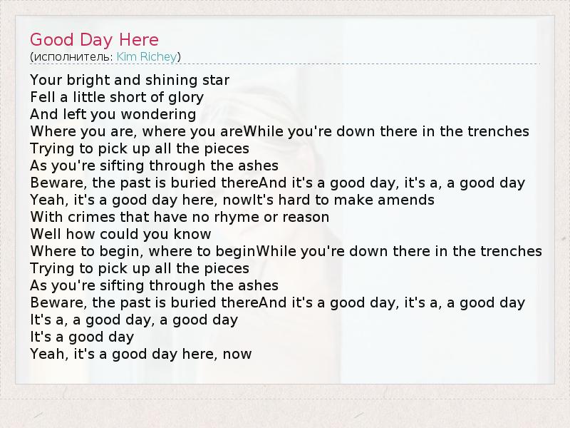 А как ты думаешь, о чем песня "Good Day Here" ?