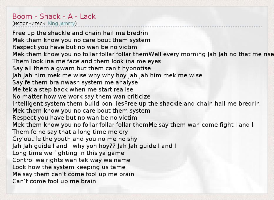 ГлавнаяИсполнителиKing JammyBoom - Shack - A - Lack