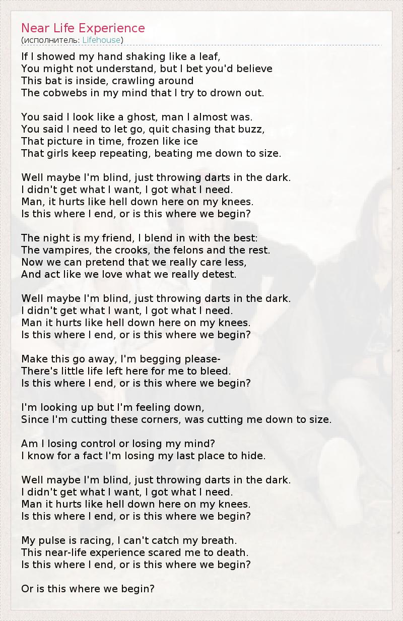 А как ты думаешь, о чем песня "Near Life Experience" ?