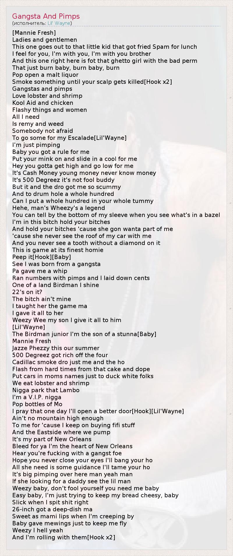 А как ты думаешь, о чем песня "Gangsta And Pimps" ?