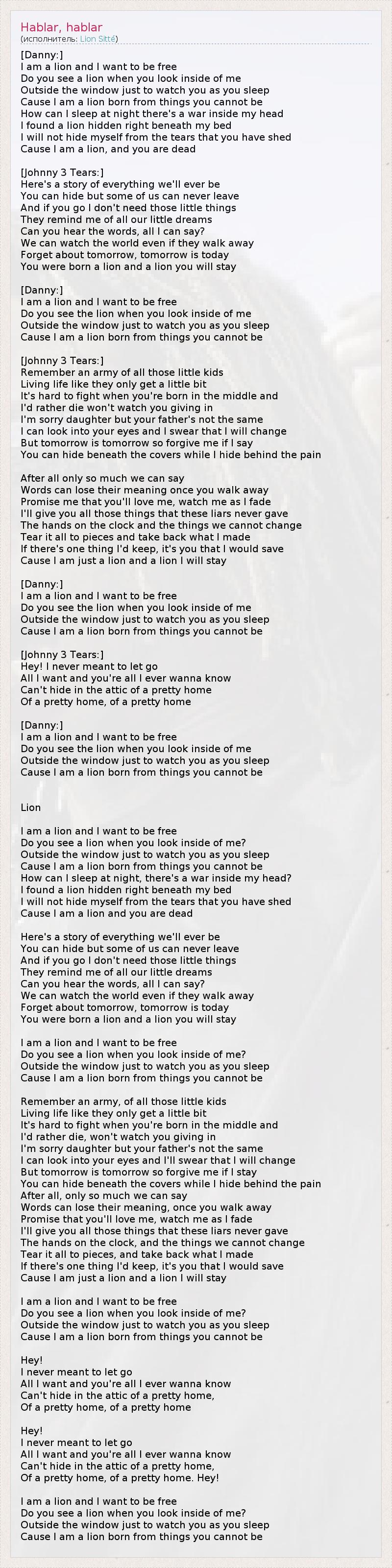 Cause I am just a lion and a lion I will stay