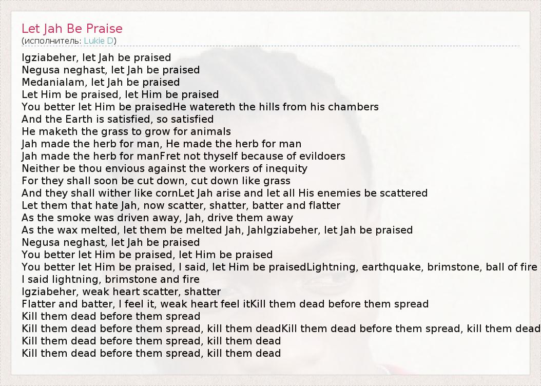 А как ты думаешь, о чем песня "Let Jah Be Praise" ?