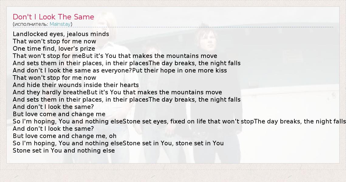 А как ты думаешь, о чем песня "Don't I Look The Same" ?
