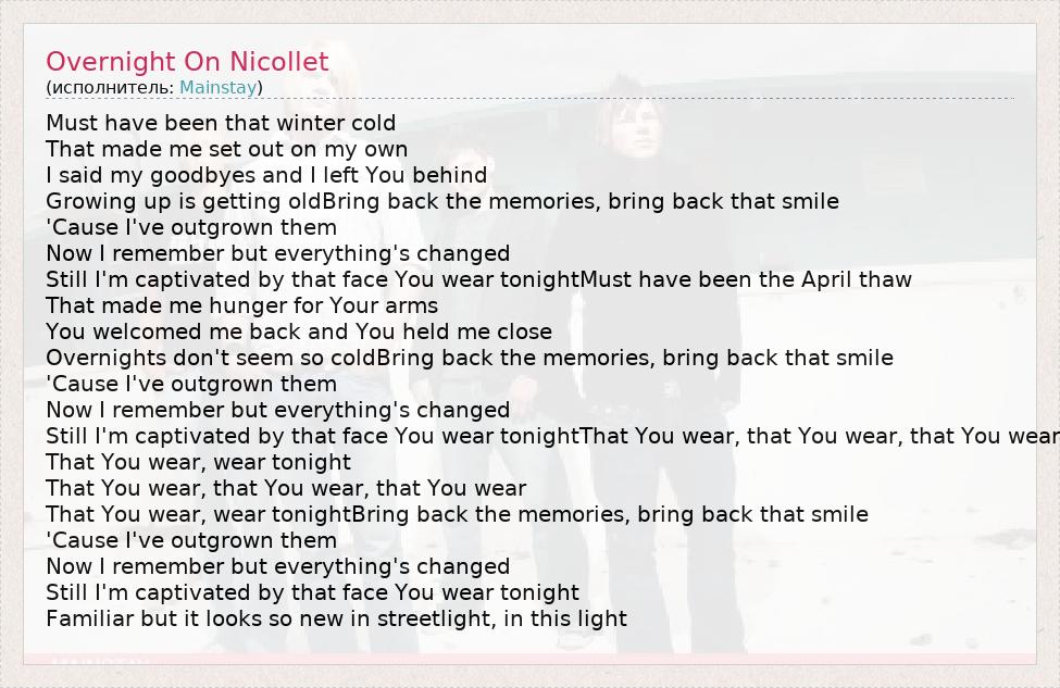 А как ты думаешь, о чем песня "Overnight On Nicollet" ?