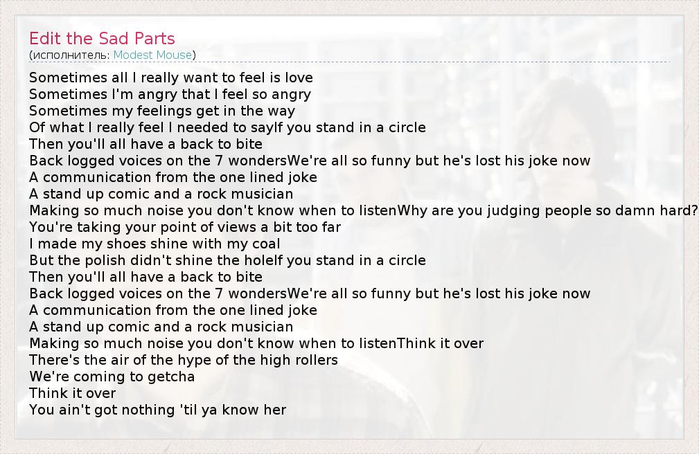 А как ты думаешь, о чем песня "Edit the Sad Parts" ?