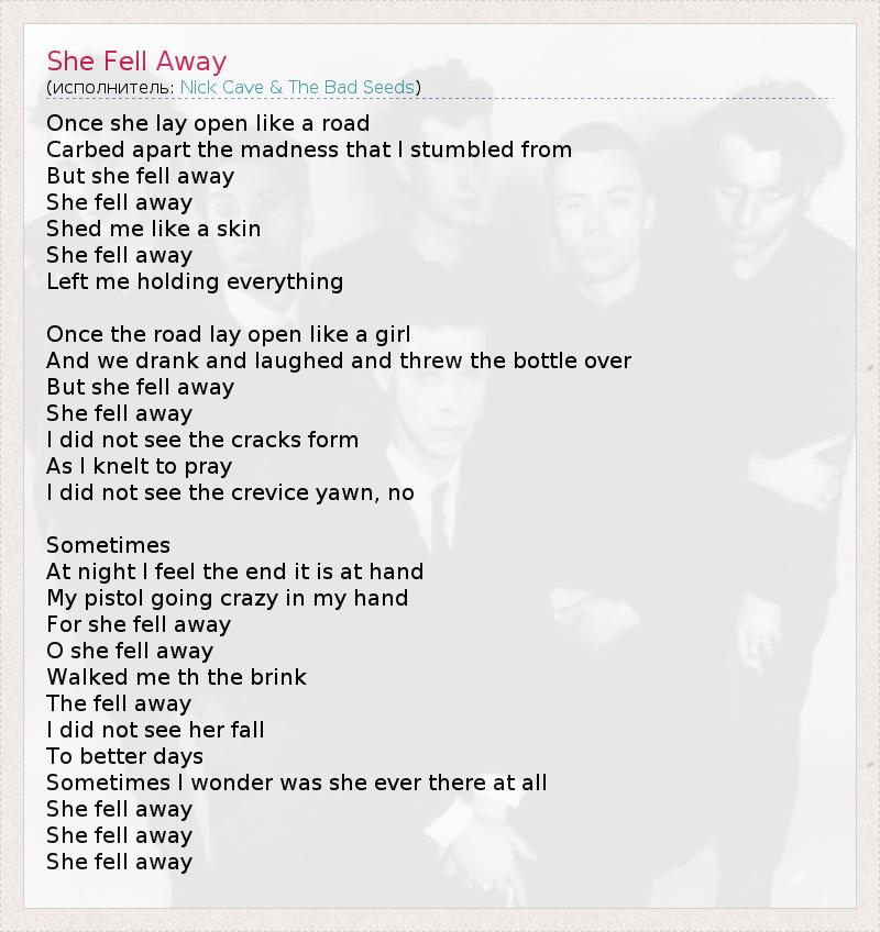 А как ты думаешь, о чем песня "She Fell Away" ?