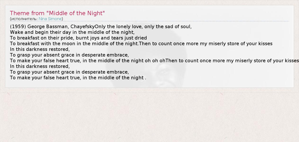 ГлавнаяИсполнителиNina SimoneTheme from "Middle of the Night"