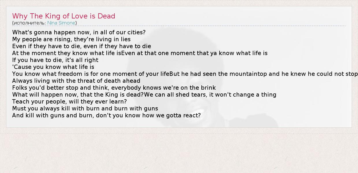 А как ты думаешь, о чем песня "Why The King of Love is Dead" ?