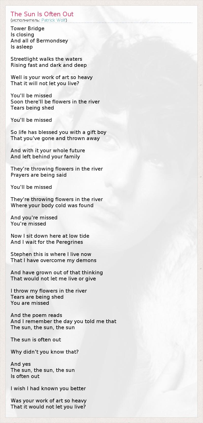 А как ты думаешь, о чем песня "The Sun Is Often Out" ?