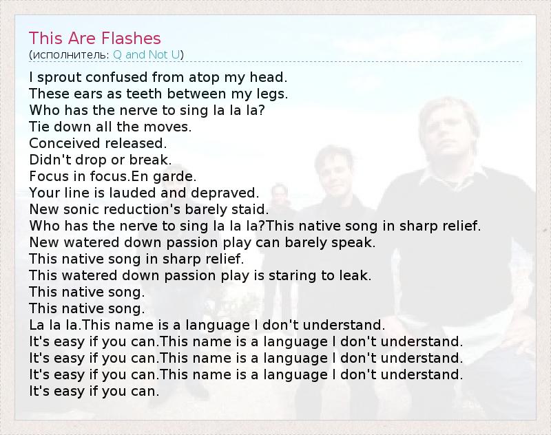 А как ты думаешь, о чем песня "This Are Flashes" ?