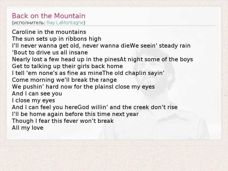 А как ты думаешь, о чем песня "Back on the Mountain" ?