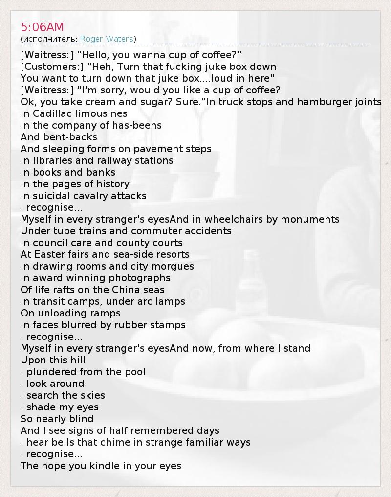 А как ты думаешь, о чем песня "5:06AM" ?