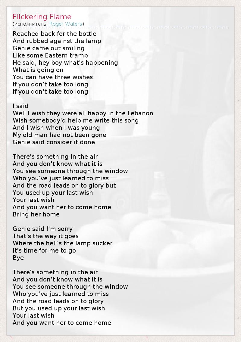 А как ты думаешь, о чем песня "Flickering Flame" ?