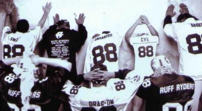 Cтолетие назад (или чуть больше — в 1898 году) добровольческий полк бесшабашных кавалеристов Тедди Рузвельта, будущего президента США, наводил ужас на врага во время американо-испанской войны. Отчаянные вояки, налетавшие вихрем и споро рубившие испанцев на колбасу, назывались Rough Riders. Они довольно скоро оказались возведены американской пропагандой в формат национальных героев и всячески мифологизированы. Десяток лет назад, в 1998 году, в США заговорили о других Ruff Ryders — ватаге сумасбродных гонщиков, которых объединяла страсть к мотоциклам, музыке и бойцовым питбулям. А всё началось с сотрудничества новичка Касcима Дина и DMX…