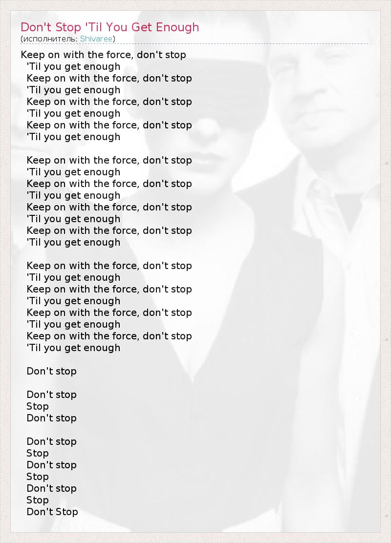 Keep on with the force, don't stop 'Til you get enough Keep on with the force, don't stop 'Til you get enough Keep on with the force, don't stop 'Til you get enough Keep on with the force, don't stop 'Til you get enough Keep on with the force, don't stop 'Til you get enough Keep on with the force, don't stop 'Til you get enough Keep on with the force, don't stop 'Til you get enough Keep on with the force, don't stop 'Til you get enough Keep on with the force, don't stop 'Til you get enough Keep on with the force, don't stop 'Til you get enough Keep on with the force, don't stop 'Til you get enough Keep on with the force, don't stop 'Til you get enough Don't stop Don't stop Stop Don't stop Don't stop Stop Don't stop Stop Don't stop Stop Don't Stop