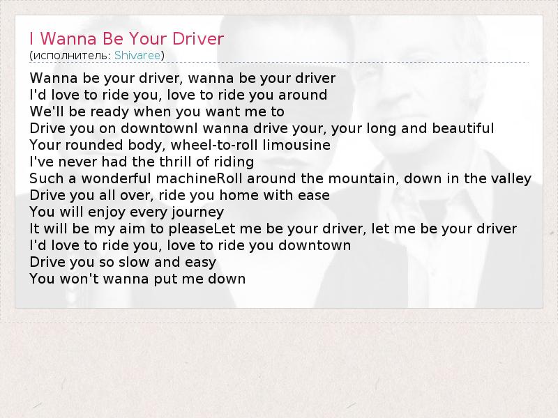 А как ты думаешь, о чем песня "I Wanna Be Your Driver" ?