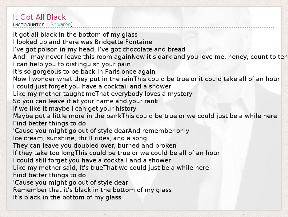А как ты думаешь, о чем песня "It Got All Black" ?