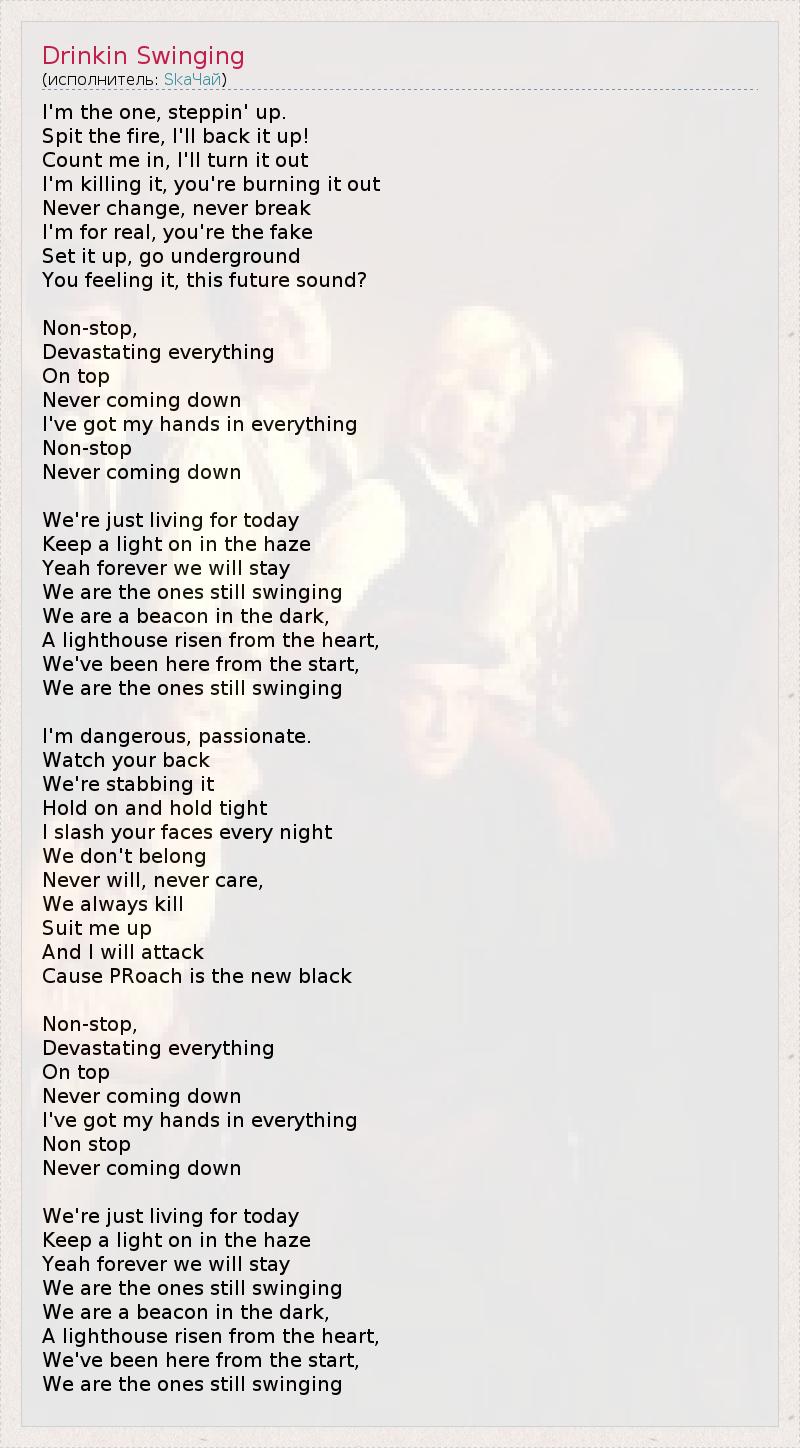 А как ты думаешь, о чем песня "Drinkin Swinging" ?