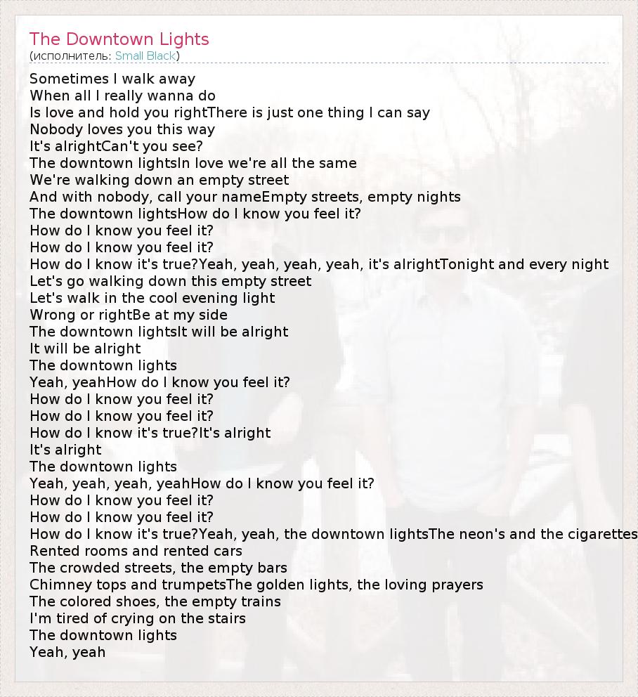 А как ты думаешь, о чем песня "The Downtown Lights" ?