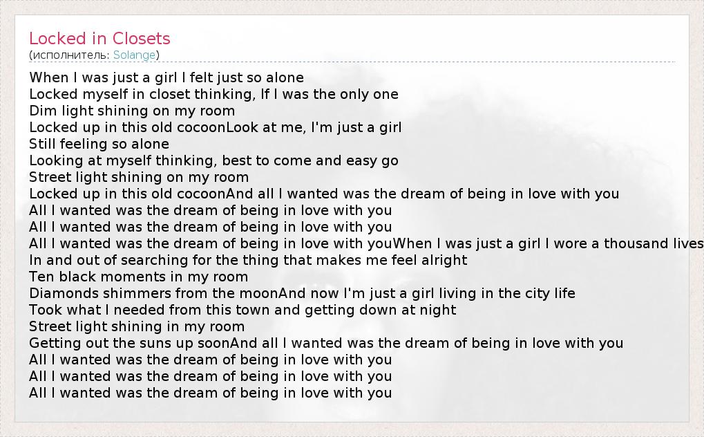 А как ты думаешь, о чем песня "Locked in Closets" ?