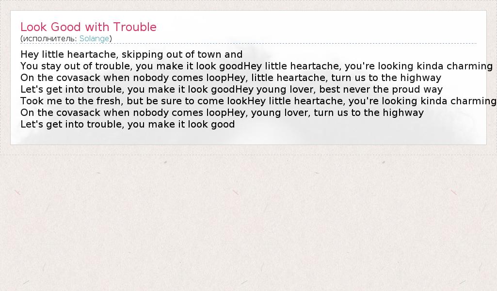ГлавнаяИсполнителиSolangeLook Good with Trouble