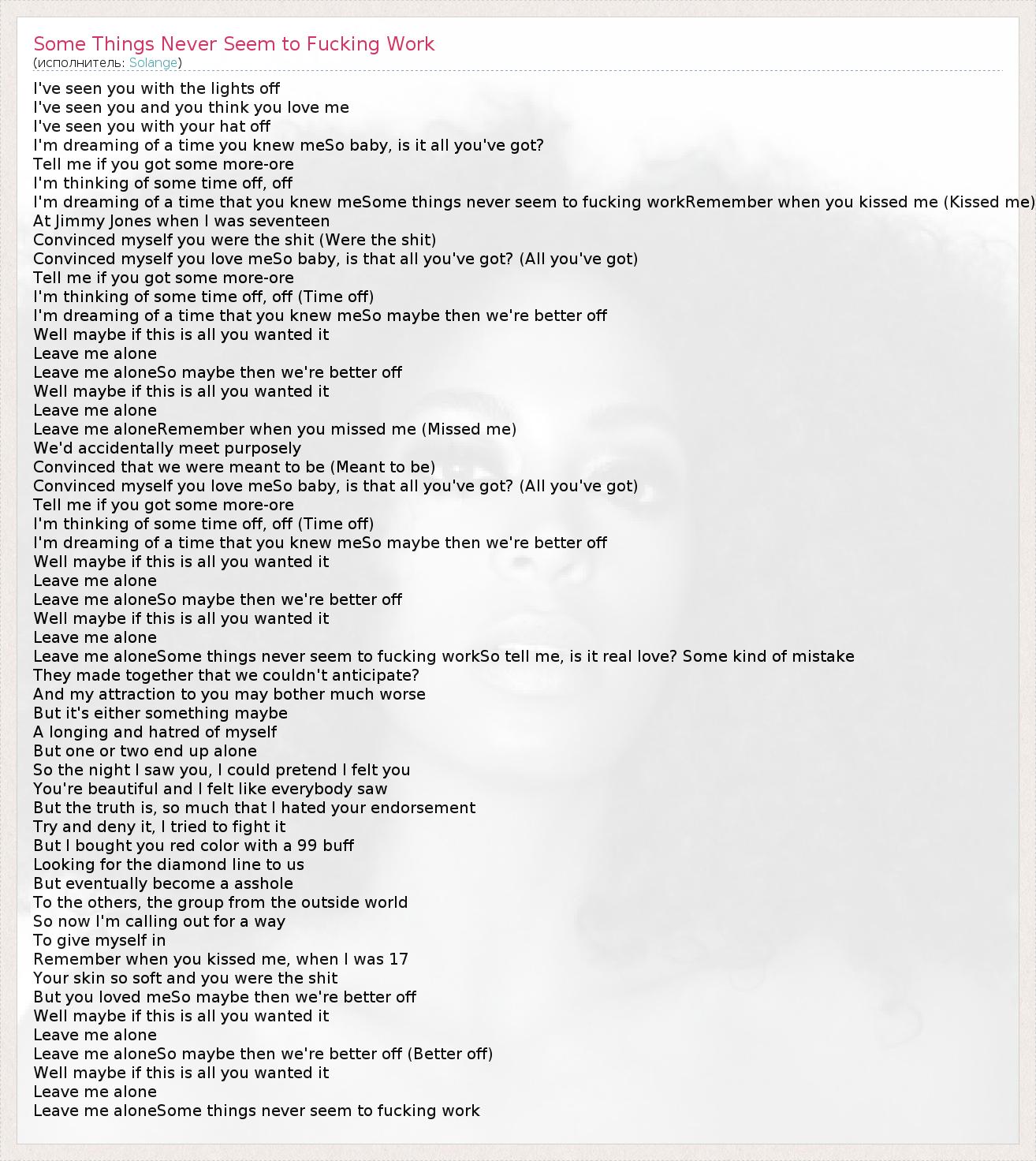 ГлавнаяИсполнителиSolangeSome Things Never Seem to Fucking Work
